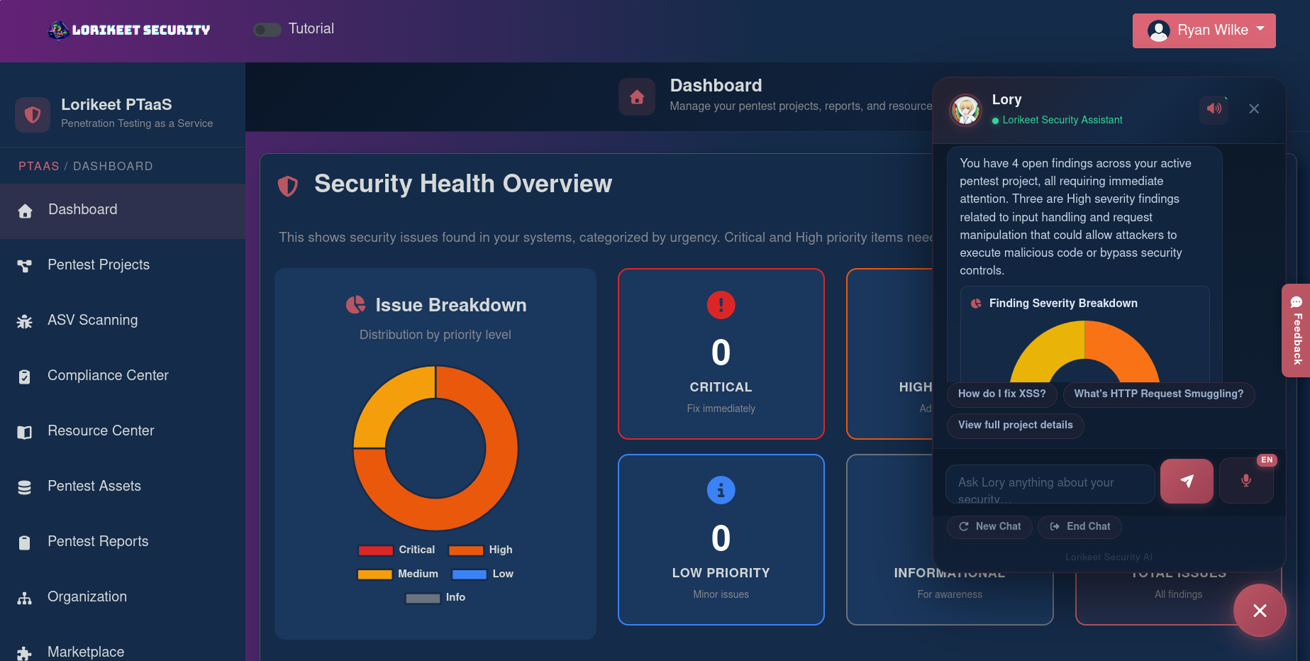 Picture this: a security lead is woken at 2 a.m. with a notification that a critical endpoint has an exploitable deserialization bug. They open a portal and see the live investigation, remediation steps, a re-test ticket, and an AI assistant summarizing risk to the board — not a stale PDF. This is the operating scenario Lorikeet Security targets: a platform that converges human-led offensive testing, continuous attack-surface monitoring, and compliance orchestration into a single, real-time experience. The product combines 100% manual penetration testing (no scanner noise), a 24/7 surface-monitoring pipeline, and Lory, an AI assistant trained on nearly 2,000 vulnerability entries — all surfaced through a portal that emphasizes live telemetry, remediation workflows, and audit-ready outputs.